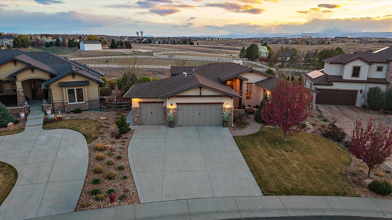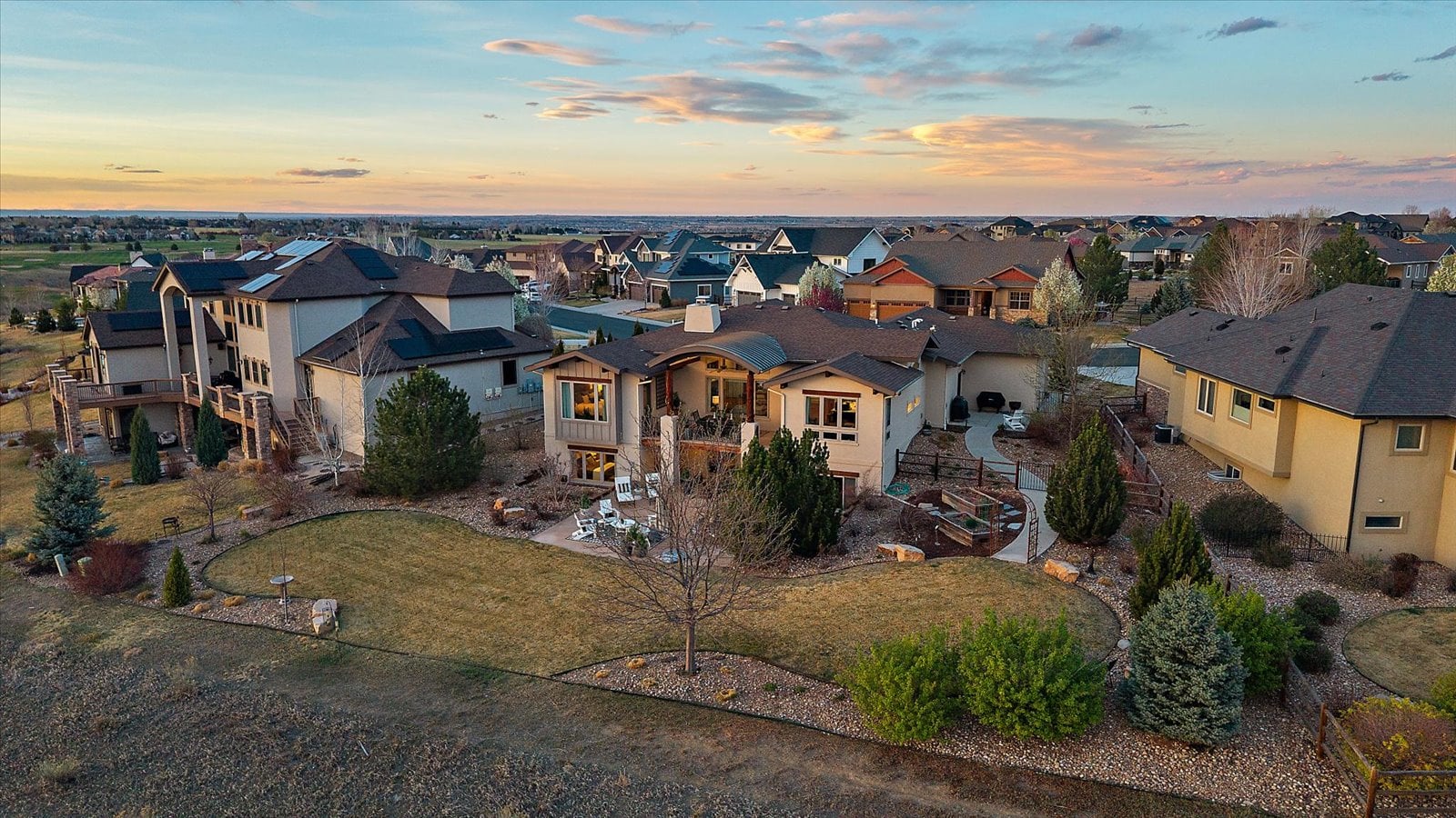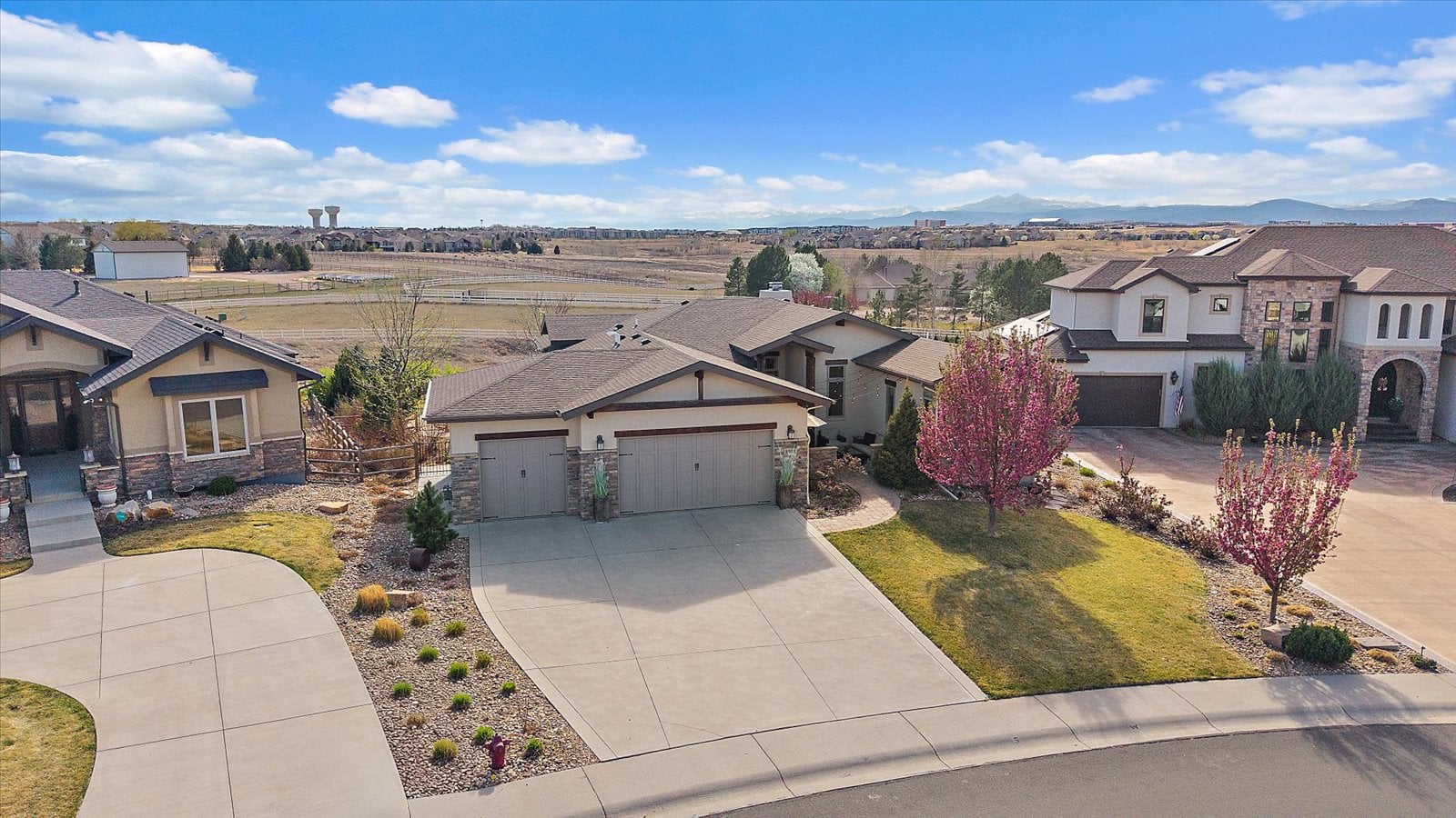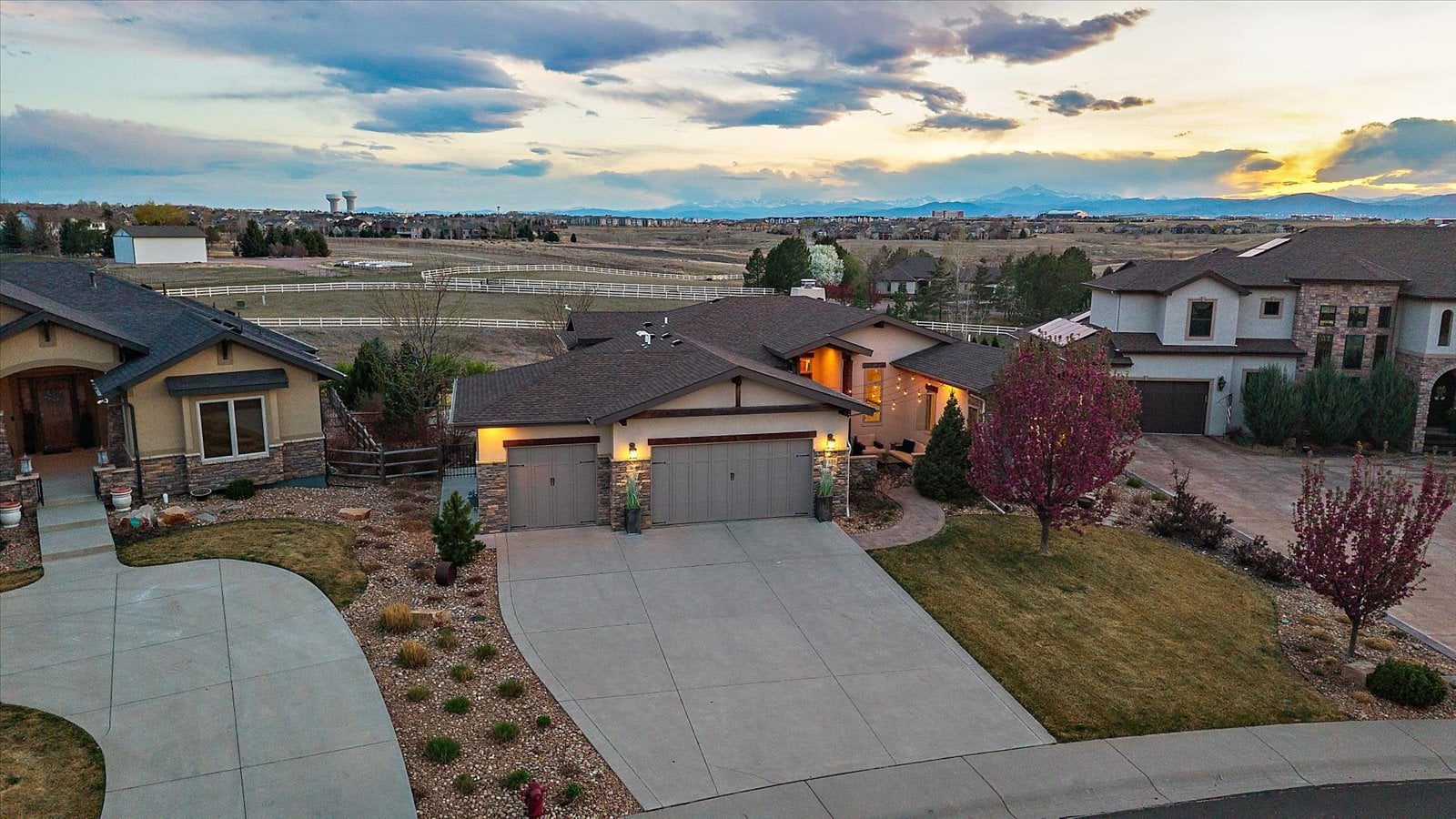 Set on a view-laden .37-acre lot backing to protected open space, this stunning walk-out ranch in coveted High Pointe Estates offers sweeping mountain views, unforgettable sunsets, and a lifestyle designed for effortless living and entertaining. Thoughtfully designed with 5 beds and 5 baths, this mountain modern estate is filled with natural light from Anderson casement windows and elevated by rich hardwood floors, wood beam accents & stone flanked fireplace. The chef’s kitchen is both beautiful and functional, featuring 42” knotty alder cabinetry, quartz countertops, an upgraded KitchenAid appliance package with Dacor cooktop, and a designer-influenced walk-in pantry w/ built-ins + a separate dry bar with bev fridge. The main-level primary suite is a true retreat with patio access, expansive views, and a luxurious 5-piece bath with soaking tub, oversized shower, dual vanities, and a spacious walk-in closet. A main-floor guest suite or study with en suite bath adds flexibility, while the oversized mudroom + a main level laundry and a powder bath enhance everyday ease. The finished walk-out basement impresses with soaring ceilings, open-concept rec spaces, and 3 additional bedrooms—each with walk-in closets, one with its own en suite bath, two share a large dual vanity Jack-and-Jill. Enjoy Colorado living year-round from two covered decks and patio + a serene front courtyard, surrounded by mature landscaping and perennial gardens with sprinkler & drip irrigation. Additional highlights include a finished 4-car garage, dual furnaces, Hunter Douglas window treatments, holiday lighting pre-wire, hot tub pre-wire & dual gas grill hookups. Residents enjoy exclusive amenities including a pool, clubhouse, tennis, trails, and with multiple premier golf courses nearby and I-25 just minutes away for commutes. Rare opportunity for a thoughtfully refined, beautifully maintained home on a premium lot!