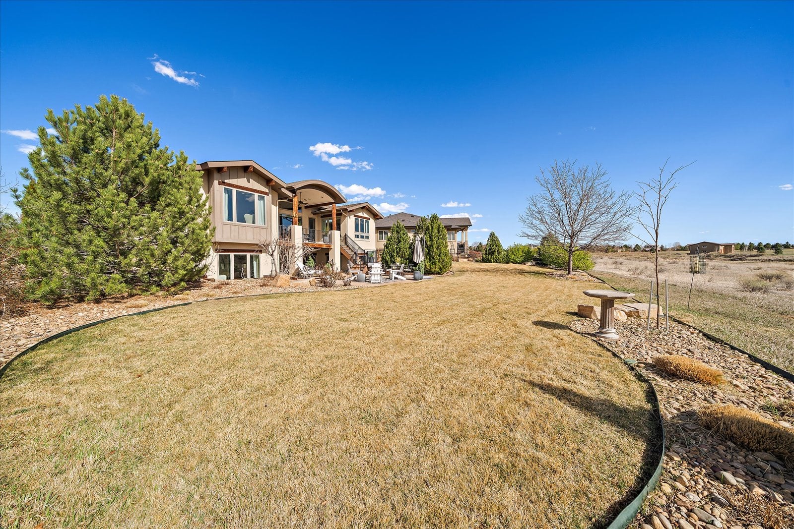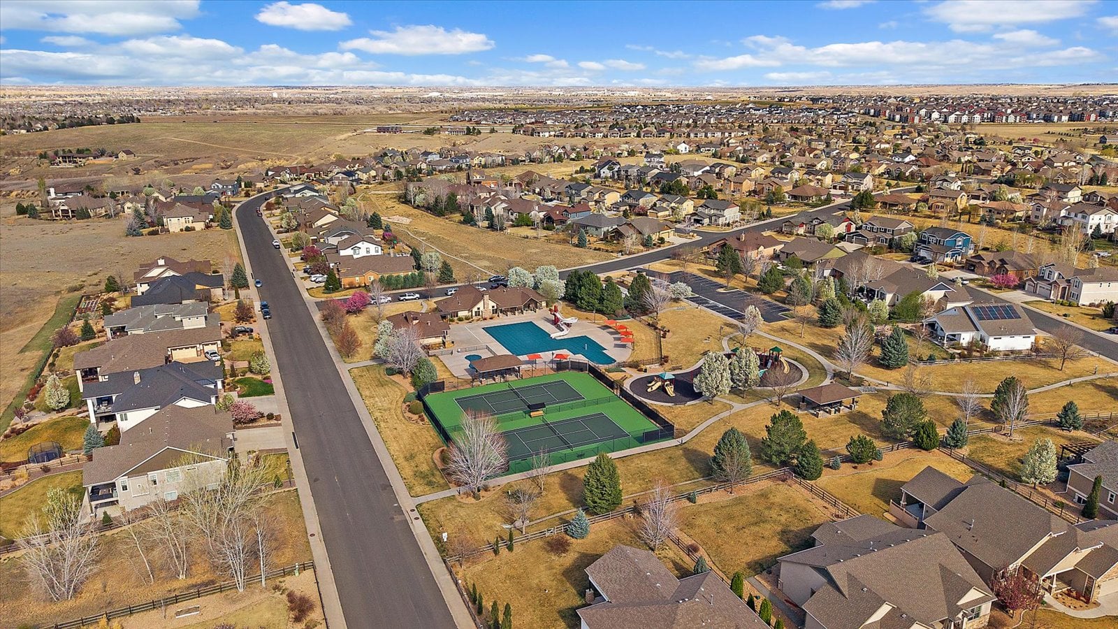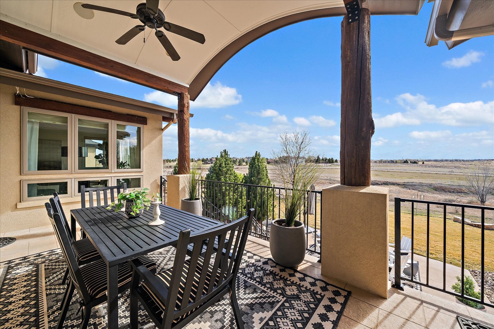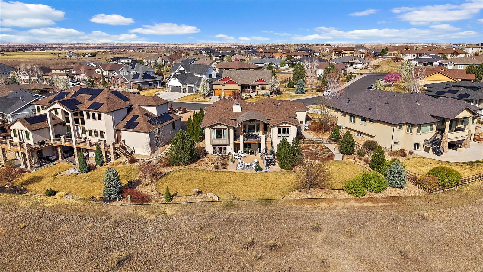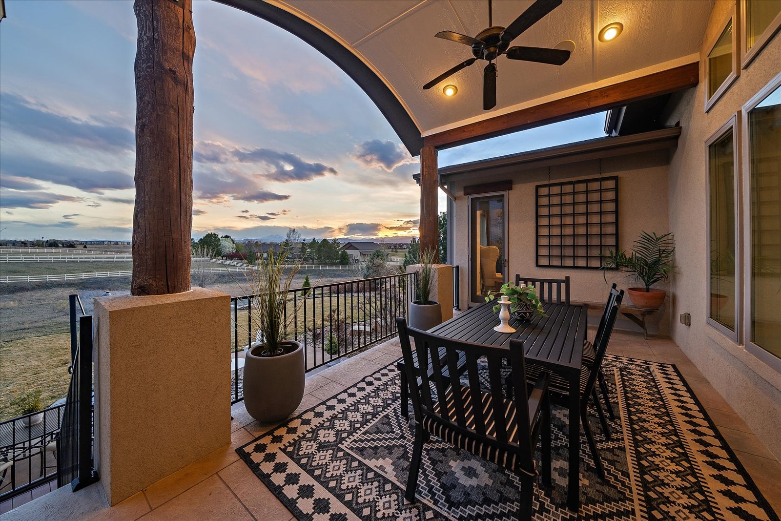 Set on a view-laden .37-acre lot backing to protected open space, this stunning walk-out ranch in coveted High Pointe Estates offers sweeping mountain views, unforgettable sunsets, and a lifestyle designed for effortless living and entertaining. Thoughtfully designed with 5 beds and 5 baths, this mountain modern estate is filled with natural light from Anderson casement windows and elevated by rich hardwood floors, wood beam accents & stone flanked fireplace. The chef’s kitchen is both beautiful and functional, featuring 42” knotty alder cabinetry, quartz countertops, an upgraded KitchenAid appliance package with Dacor cooktop, and a designer-influenced walk-in pantry w/ built-ins + a separate dry bar with bev fridge. The main-level primary suite is a true retreat with patio access, expansive views, and a luxurious 5-piece bath with soaking tub, oversized shower, dual vanities, and a spacious walk-in closet. A main-floor guest suite or study with en suite bath adds flexibility, while the oversized mudroom + a main level laundry and a powder bath enhance everyday ease. The finished walk-out basement impresses with soaring ceilings, open-concept rec spaces, and 3 additional bedrooms—each with walk-in closets, one with its own en suite bath, two share a large dual vanity Jack-and-Jill. Enjoy Colorado living year-round from two covered decks and patio + a serene front courtyard, surrounded by mature landscaping and perennial gardens with sprinkler & drip irrigation. Additional highlights include a finished 4-car garage, dual furnaces, Hunter Douglas window treatments, holiday lighting pre-wire, hot tub pre-wire & dual gas grill hookups. Residents enjoy exclusive amenities including a pool, clubhouse, tennis, trails, and with multiple premier golf courses nearby and I-25 just minutes away for commutes. Rare opportunity for a thoughtfully refined, beautifully maintained home on a premium lot!