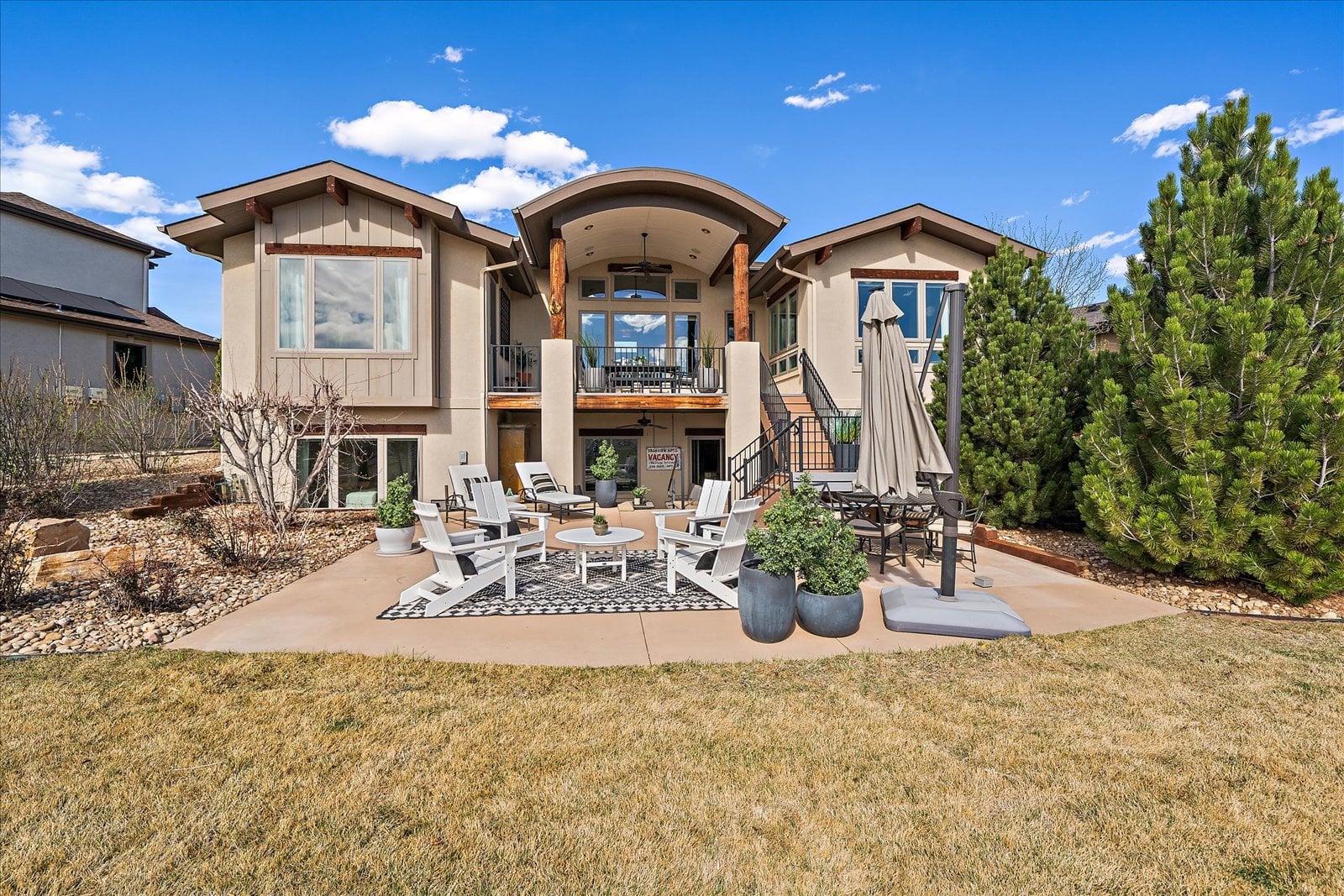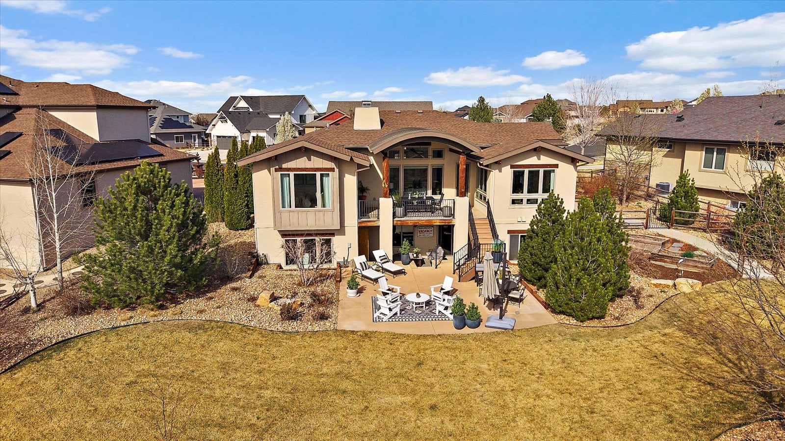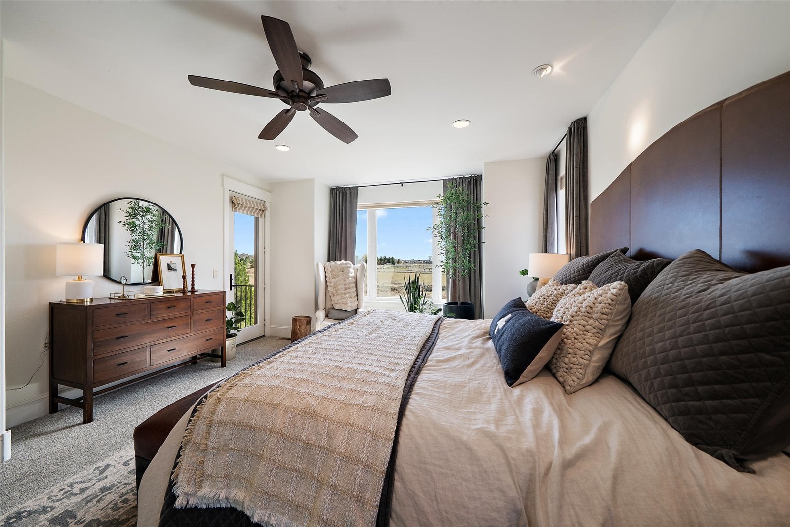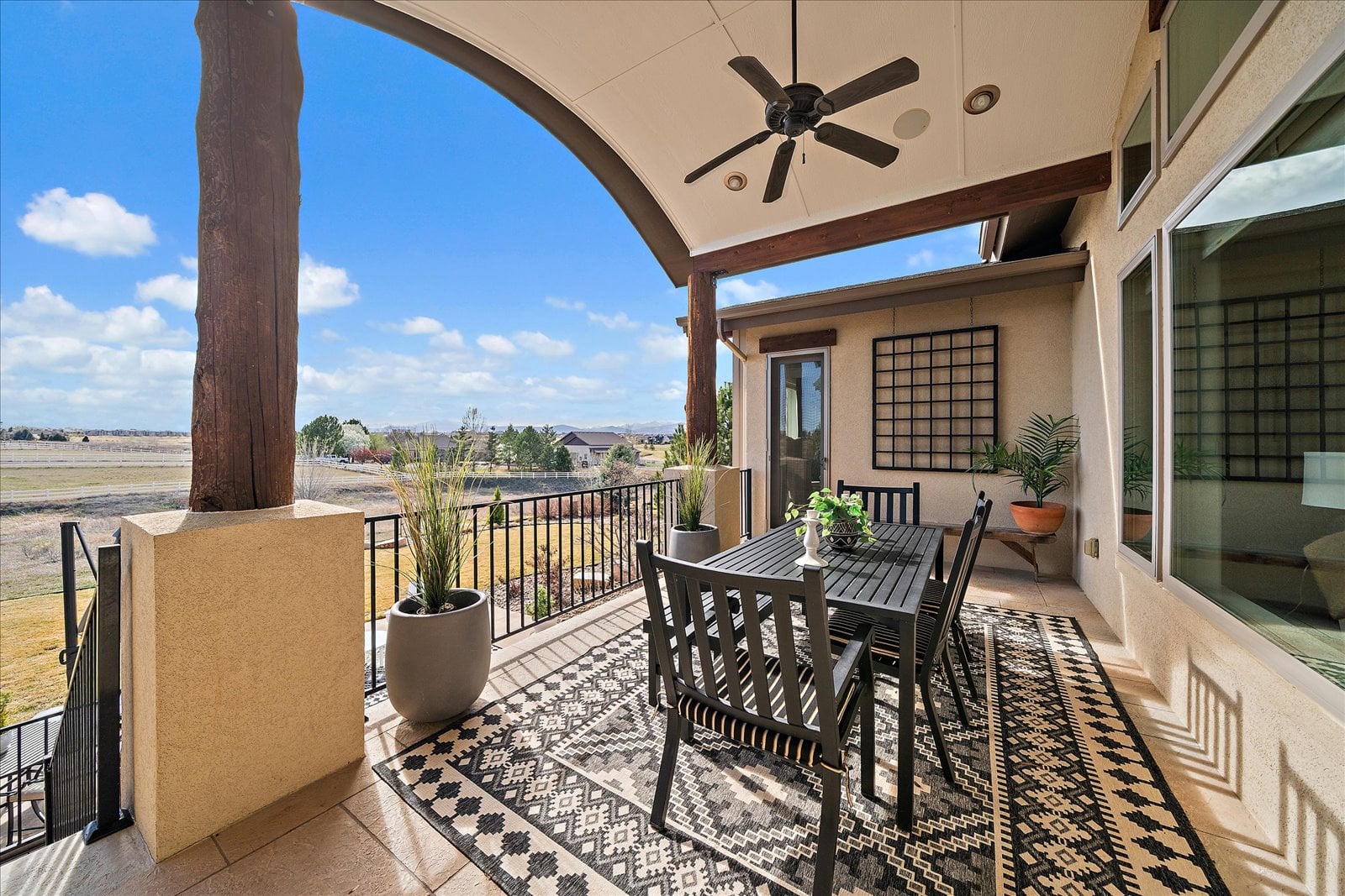 Set on a view-laden .37-acre lot backing to protected open space, this stunning walk-out ranch in coveted High Pointe Estates offers sweeping mountain views, unforgettable sunsets, and a lifestyle designed for effortless living and entertaining. Thoughtfully designed with 5 beds and 5 baths, this mountain modern estate is filled with natural light from Anderson casement windows and elevated by rich hardwood floors, wood beam accents & stone flanked fireplace. The chef’s kitchen is both beautiful and functional, featuring 42” knotty alder cabinetry, quartz countertops, an upgraded KitchenAid appliance package with Dacor cooktop, and a designer-influenced walk-in pantry w/ built-ins + a separate dry bar with bev fridge. The main-level primary suite is a true retreat with patio access, expansive views, and a luxurious 5-piece bath with soaking tub, oversized shower, dual vanities, and a spacious walk-in closet. A main-floor guest suite or study with en suite bath adds flexibility, while the oversized mudroom + a main level laundry and a powder bath enhance everyday ease. The finished walk-out basement impresses with soaring ceilings, open-concept rec spaces, and 3 additional bedrooms—each with walk-in closets, one with its own en suite bath, two share a large dual vanity Jack-and-Jill. Enjoy Colorado living year-round from two covered decks and patio + a serene front courtyard, surrounded by mature landscaping and perennial gardens with sprinkler & drip irrigation. Additional highlights include a finished 4-car garage, dual furnaces, Hunter Douglas window treatments, holiday lighting pre-wire, hot tub pre-wire & dual gas grill hookups. Residents enjoy exclusive amenities including a pool, clubhouse, tennis, trails, and with multiple premier golf courses nearby and I-25 just minutes away for commutes. Rare opportunity for a thoughtfully refined, beautifully maintained home on a premium lot!