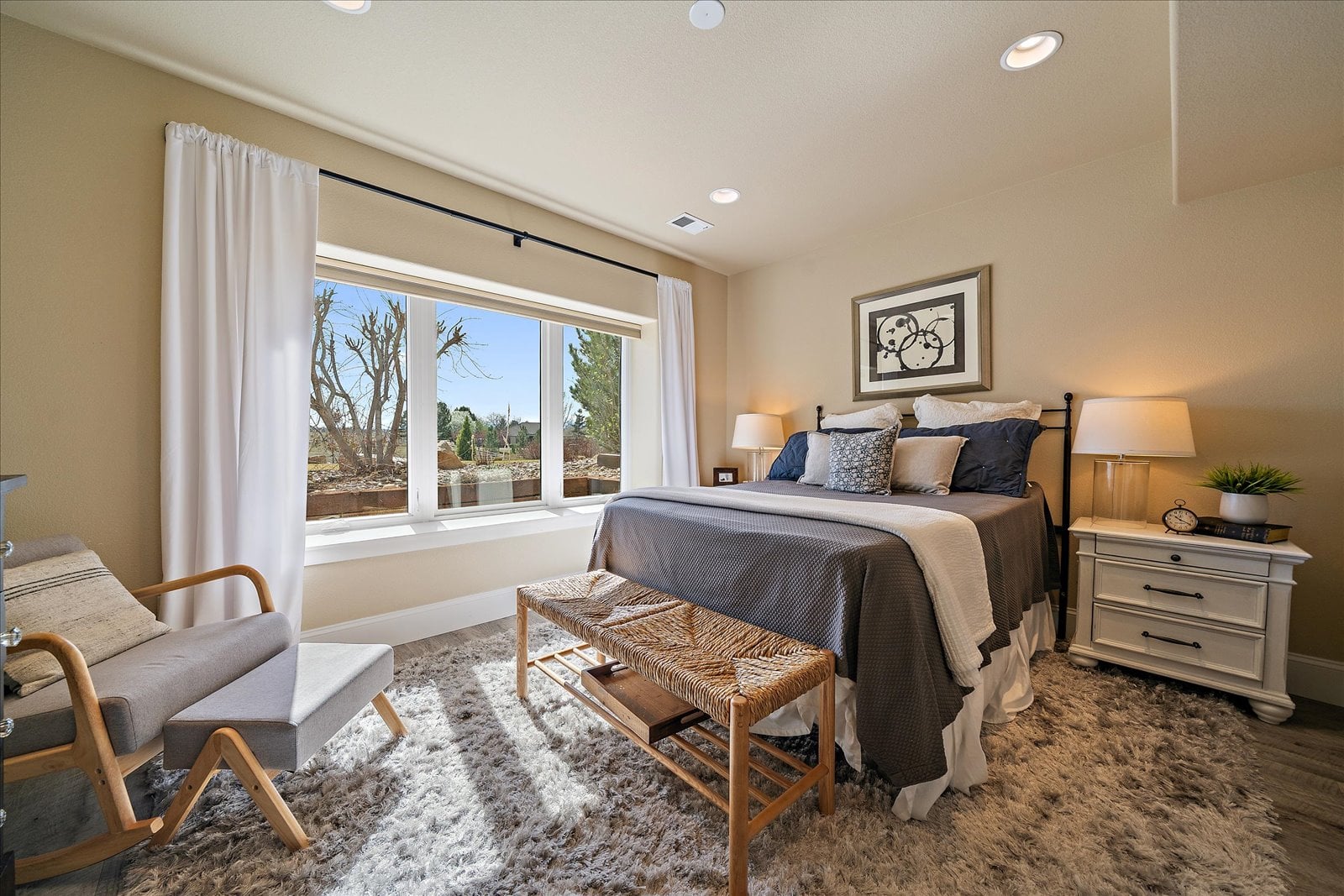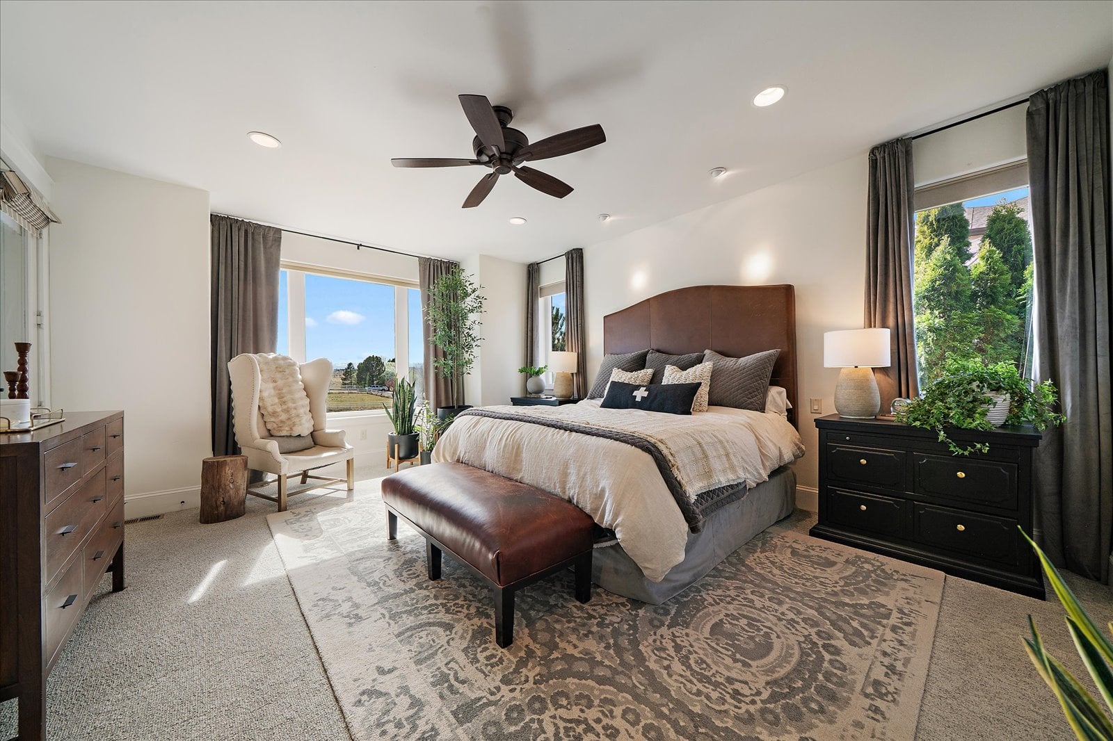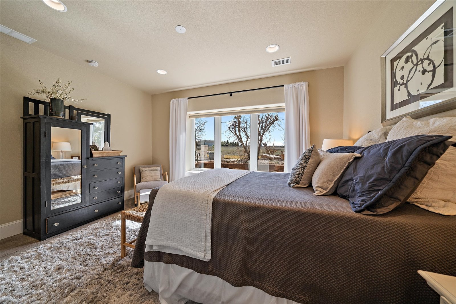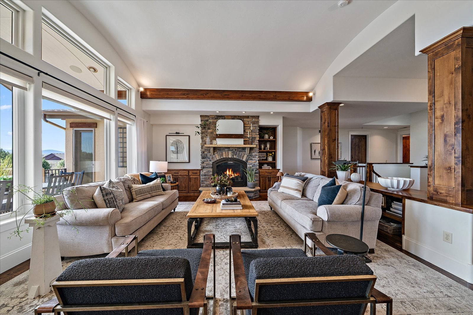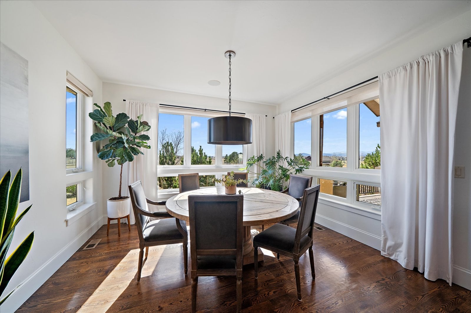 Set on a view-laden .37-acre lot backing to protected open space, this stunning walk-out ranch in coveted High Pointe Estates offers sweeping mountain views, unforgettable sunsets, and a lifestyle designed for effortless living and entertaining. Thoughtfully designed with 5 beds and 5 baths, this mountain modern estate is filled with natural light from Anderson casement windows and elevated by rich hardwood floors, wood beam accents & stone flanked fireplace. The chef’s kitchen is both beautiful and functional, featuring 42” knotty alder cabinetry, quartz countertops, an upgraded KitchenAid appliance package with Dacor cooktop, and a designer-influenced walk-in pantry w/ built-ins + a separate dry bar with bev fridge. The main-level primary suite is a true retreat with patio access, expansive views, and a luxurious 5-piece bath with soaking tub, oversized shower, dual vanities, and a spacious walk-in closet. A main-floor guest suite or study with en suite bath adds flexibility, while the oversized mudroom + a main level laundry and a powder bath enhance everyday ease. The finished walk-out basement impresses with soaring ceilings, open-concept rec spaces, and 3 additional bedrooms—each with walk-in closets, one with its own en suite bath, two share a large dual vanity Jack-and-Jill. Enjoy Colorado living year-round from two covered decks and patio + a serene front courtyard, surrounded by mature landscaping and perennial gardens with sprinkler & drip irrigation. Additional highlights include a finished 4-car garage, dual furnaces, Hunter Douglas window treatments, holiday lighting pre-wire, hot tub pre-wire & dual gas grill hookups. Residents enjoy exclusive amenities including a pool, clubhouse, tennis, trails, and with multiple premier golf courses nearby and I-25 just minutes away for commutes. Rare opportunity for a thoughtfully refined, beautifully maintained home on a premium lot!