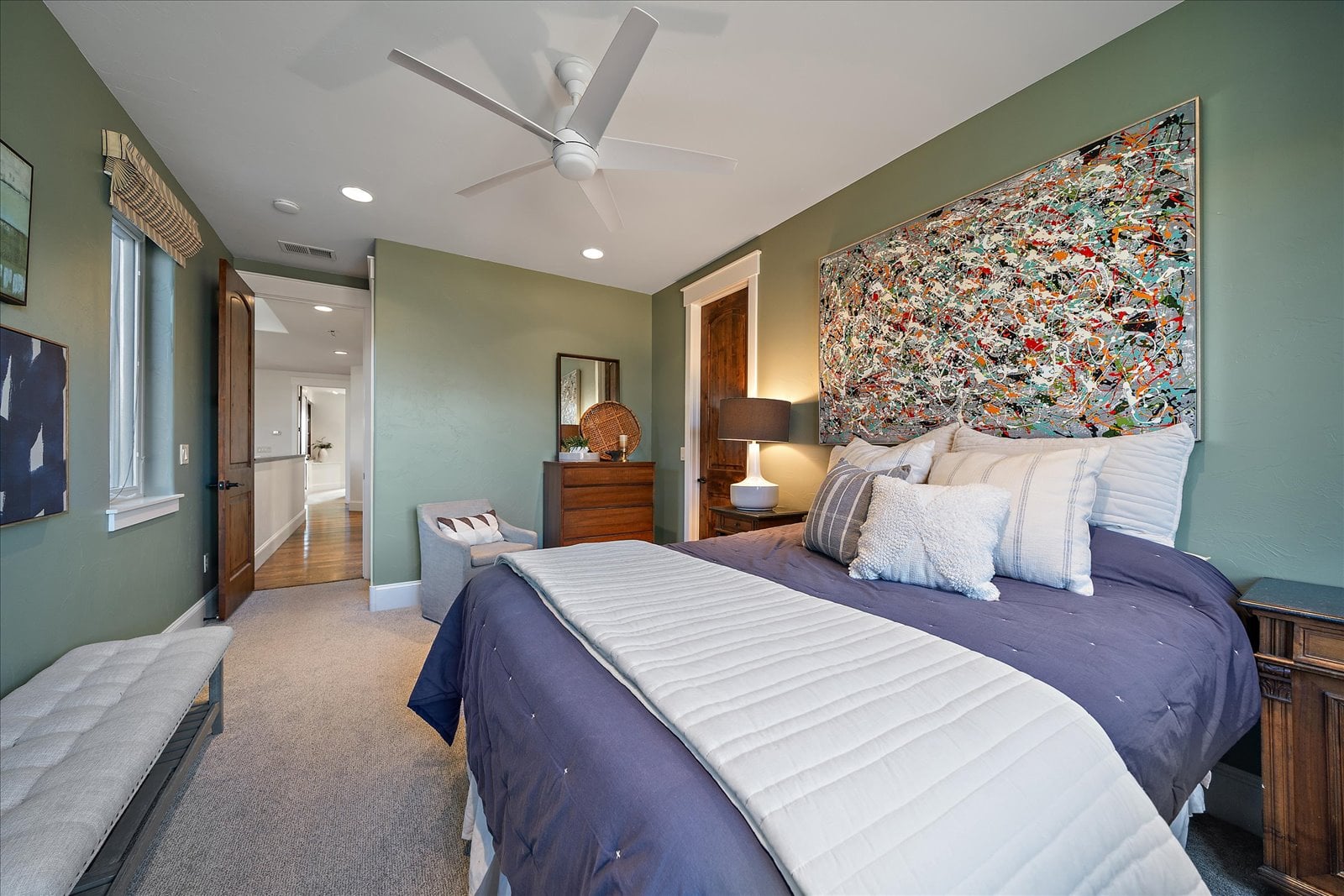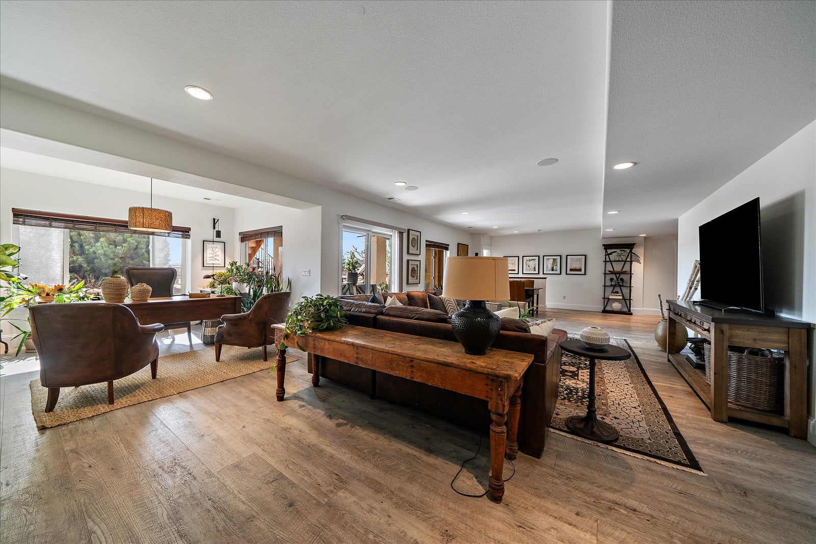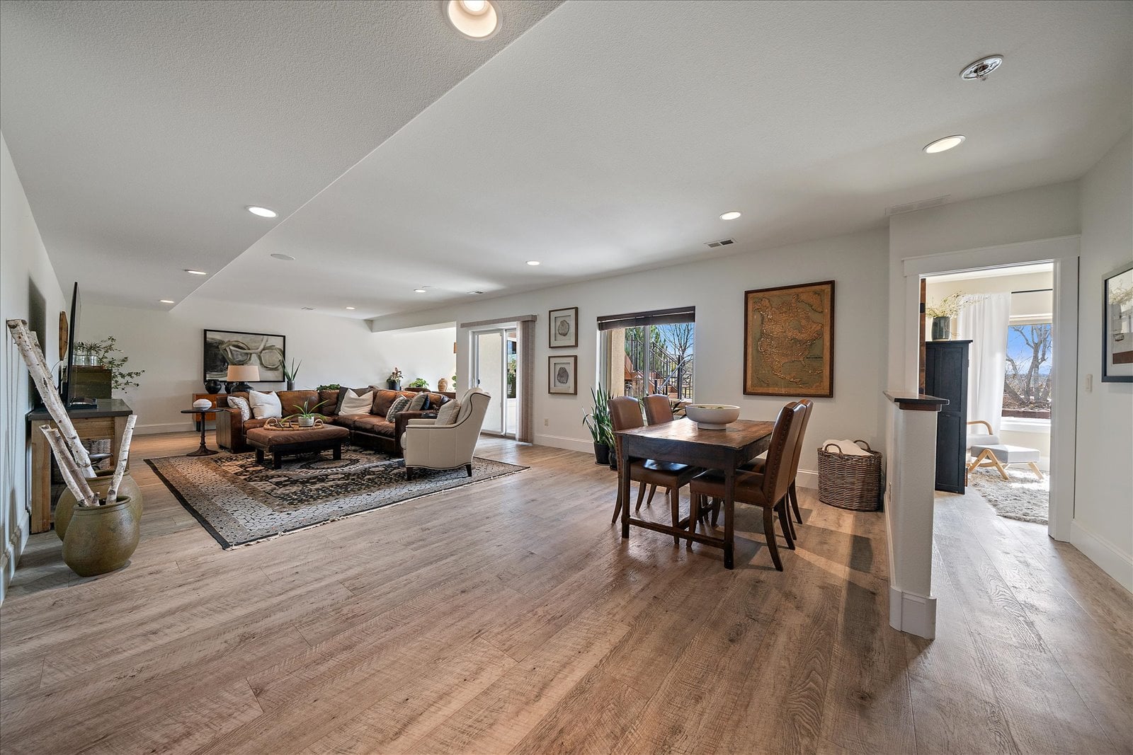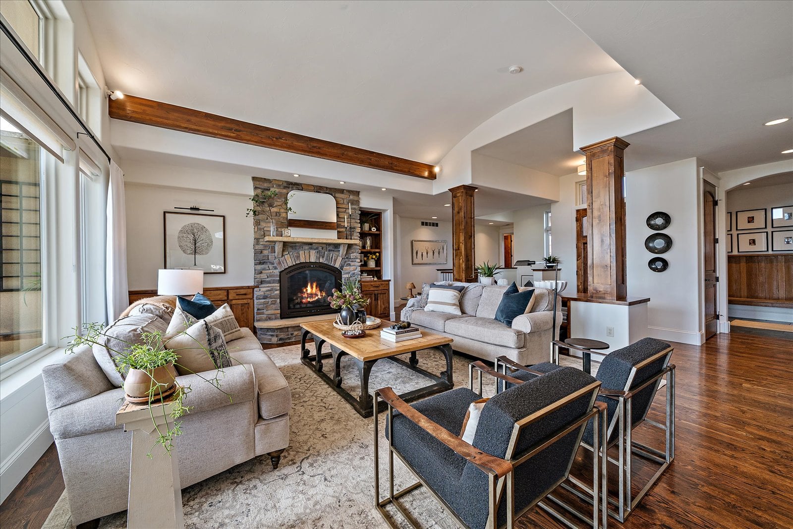 Set on a view-laden .37-acre lot backing to protected open space, this stunning walk-out ranch in coveted High Pointe Estates offers sweeping mountain views, unforgettable sunsets, and a lifestyle designed for effortless living and entertaining. Thoughtfully designed with 5 beds and 5 baths, this mountain modern estate is filled with natural light from Anderson casement windows and elevated by rich hardwood floors, wood beam accents & stone flanked fireplace. The chef’s kitchen is both beautiful and functional, featuring 42” knotty alder cabinetry, quartz countertops, an upgraded KitchenAid appliance package with Dacor cooktop, and a designer-influenced walk-in pantry w/ built-ins + a separate dry bar with bev fridge. The main-level primary suite is a true retreat with patio access, expansive views, and a luxurious 5-piece bath with soaking tub, oversized shower, dual vanities, and a spacious walk-in closet. A main-floor guest suite or study with en suite bath adds flexibility, while the oversized mudroom + a main level laundry and a powder bath enhance everyday ease. The finished walk-out basement impresses with soaring ceilings, open-concept rec spaces, and 3 additional bedrooms—each with walk-in closets, one with its own en suite bath, two share a large dual vanity Jack-and-Jill. Enjoy Colorado living year-round from two covered decks and patio + a serene front courtyard, surrounded by mature landscaping and perennial gardens with sprinkler & drip irrigation. Additional highlights include a finished 4-car garage, dual furnaces, Hunter Douglas window treatments, holiday lighting pre-wire, hot tub pre-wire & dual gas grill hookups. Residents enjoy exclusive amenities including a pool, clubhouse, tennis, trails, and with multiple premier golf courses nearby and I-25 just minutes away for commutes. Rare opportunity for a thoughtfully refined, beautifully maintained home on a premium lot!