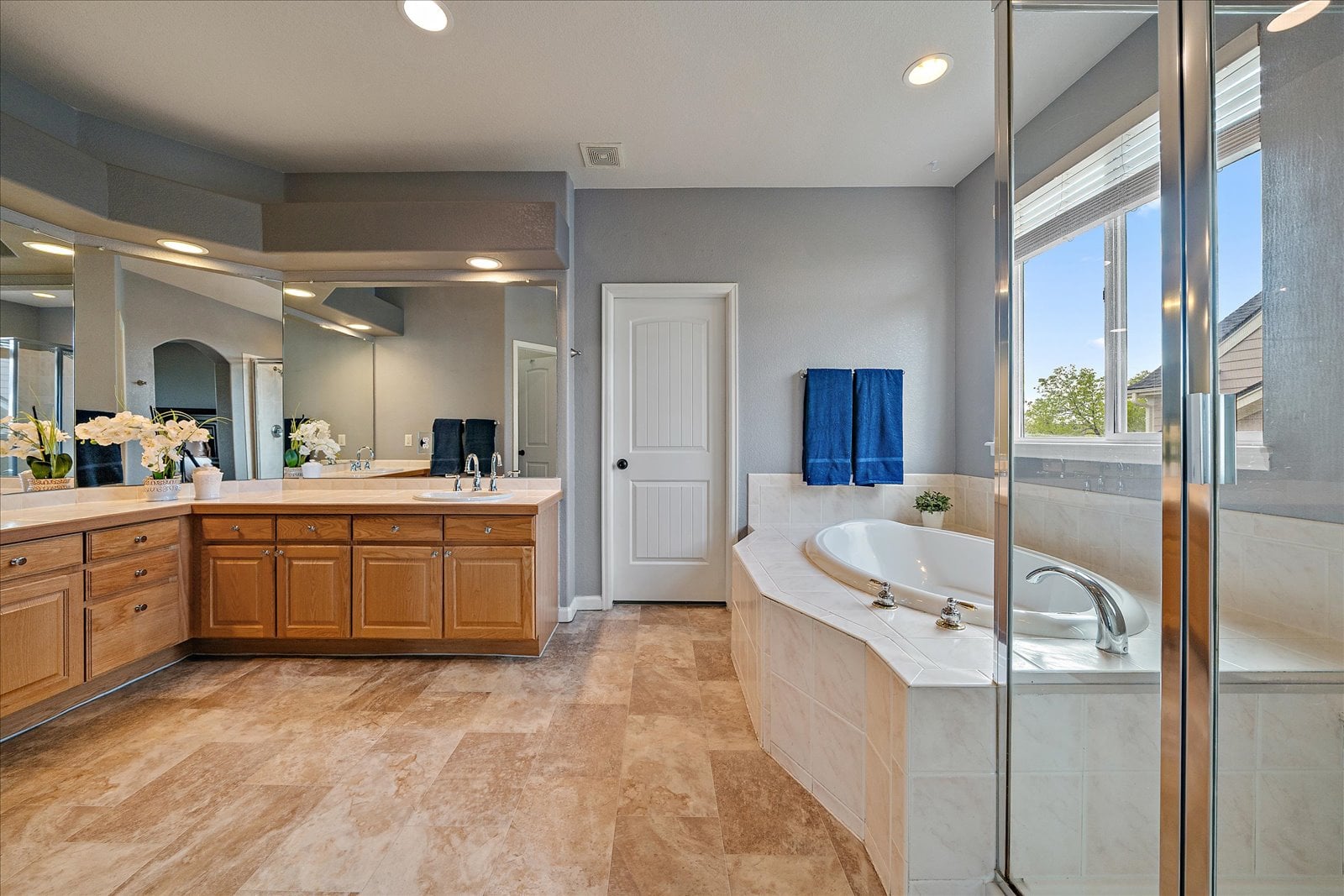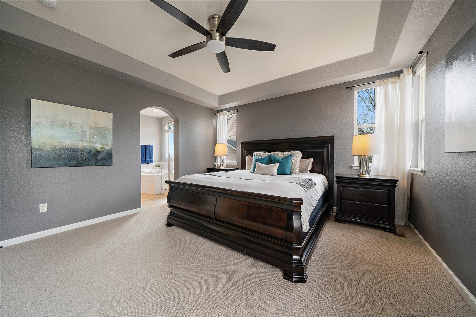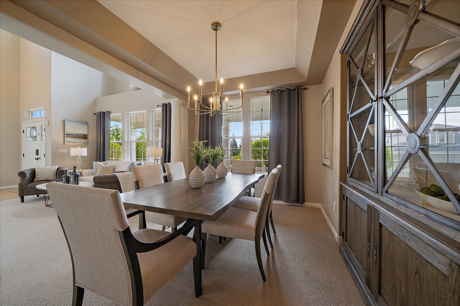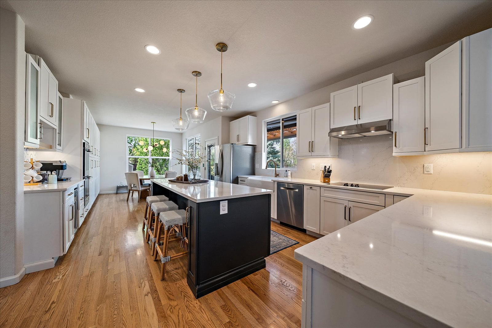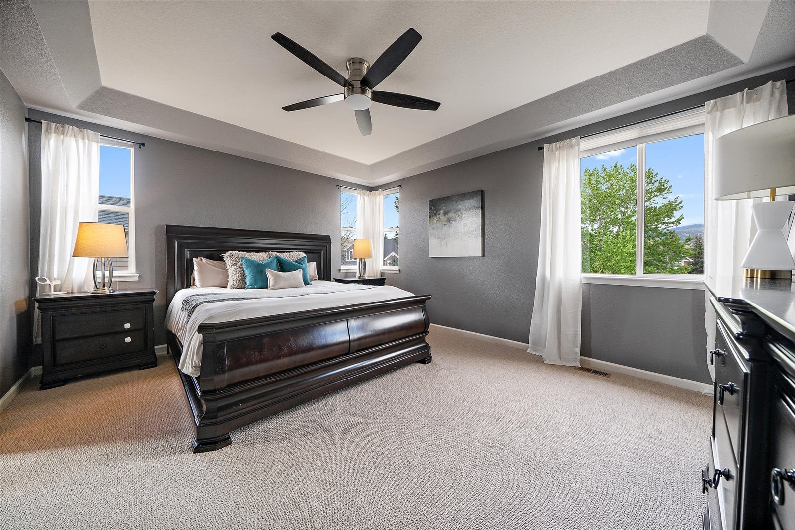 Experience incomparable living in West Arvada’s coveted Fieldstone neighborhood and come home to awe-inspiring Front Range vistas and unobstructed views of North Table Mountain! From the welcoming covered front porch and beyond, this beautifully maintained home offers the perfect spaces for nearly year-round outdoor living + an expansive interior made for entertaining. The main level great room showcases a stunning new chef’s kitchen featuring a bevy of functional & fashionable cabinetry with pull outs & soft close drawers + Caesarstone countertops, farmhouse sink, designer light fixtures & hardware + upgraded appliances including dual ovens and bev fridge in the built-in coffee/dry bar area + an impressive wall of built-in pantry storage in the breakfast nook space. You’ll find gleaming hardwood floors + brand new upgraded carpeting on both upper levels. Natural light floods the interior through walls of windows and the main floor vaulted family room adds a gas fireplace and room for the entire family to enjoy game night. Hosting is a breeze with the well-appointed formal living and dining areas. Main floor also adds guest/powder bath + upgraded laundry/mud room off the 3 CAR tandem garage. Upstairs you’ll find a sunlit loft space perfect for a playroom, study or media room + two secondary bedrooms with ample closet space and a shared full bath with dual vanity. The luxurious primary suite enjoys those North Table views and features a five piece bath + large walk in closet. The finished basement adds a 4th conforming bedroom with adjacent full bath, additional family room/game room space + gym/study area and unfinished storage area. The fully fenced spacious backyard is equal parts private and welcoming and adds a stamped concrete patio with pergola, sun shades, mature trees, and, yes, more views! 3 car garage + newer storage shed add plenty of gear storage options. Easy access to miles of trails, open space and parks. Perfect proximity to Golden, Boulder and Metro Denver. This home truly embraces the best Colorado has to offer with its combination of amenities and location!