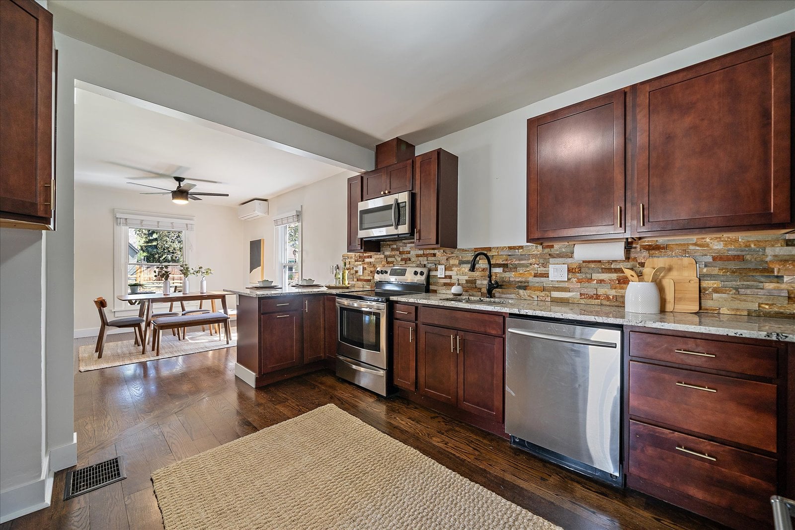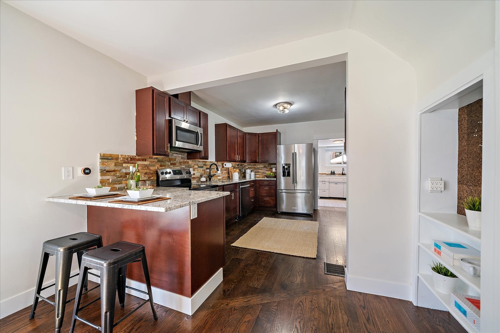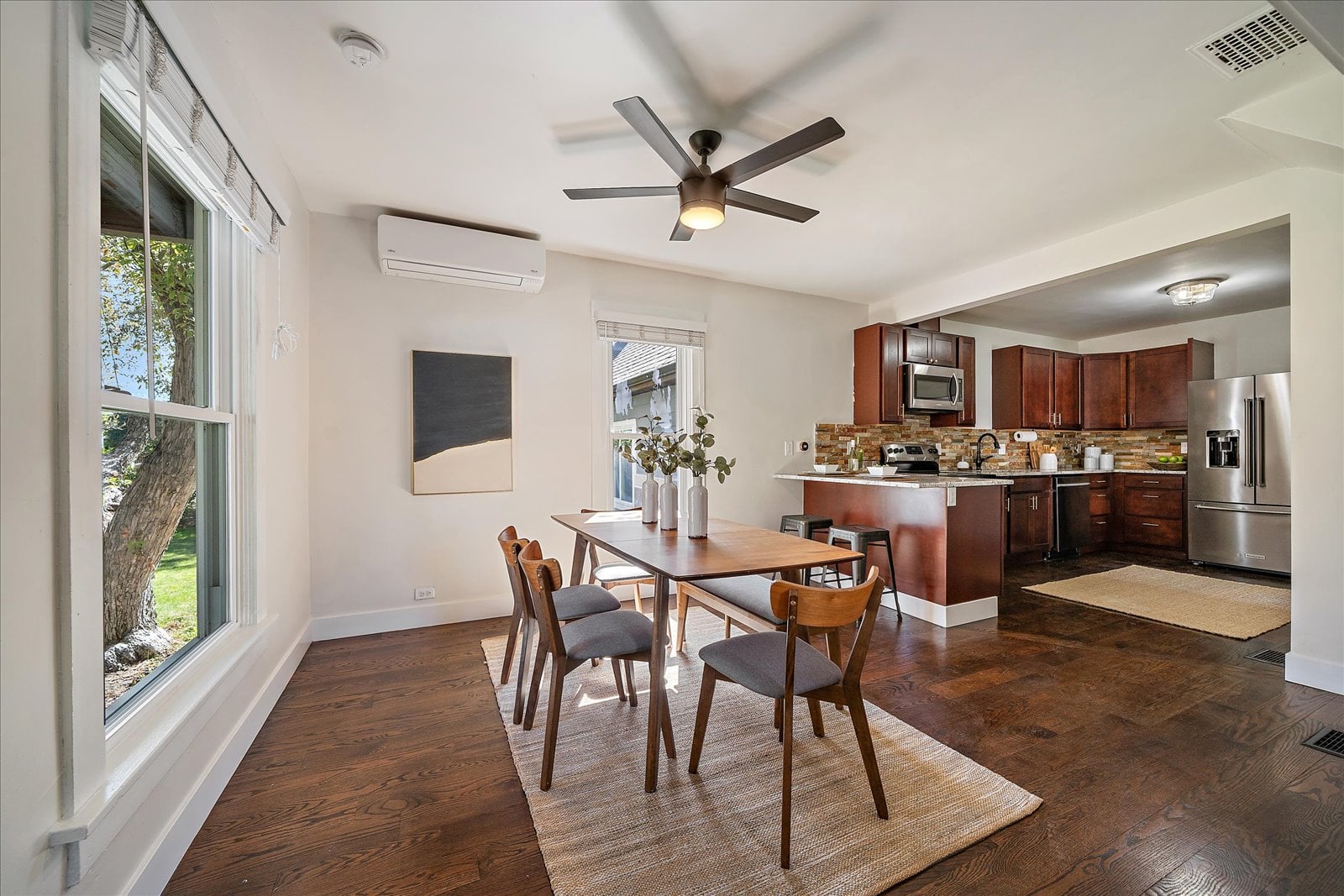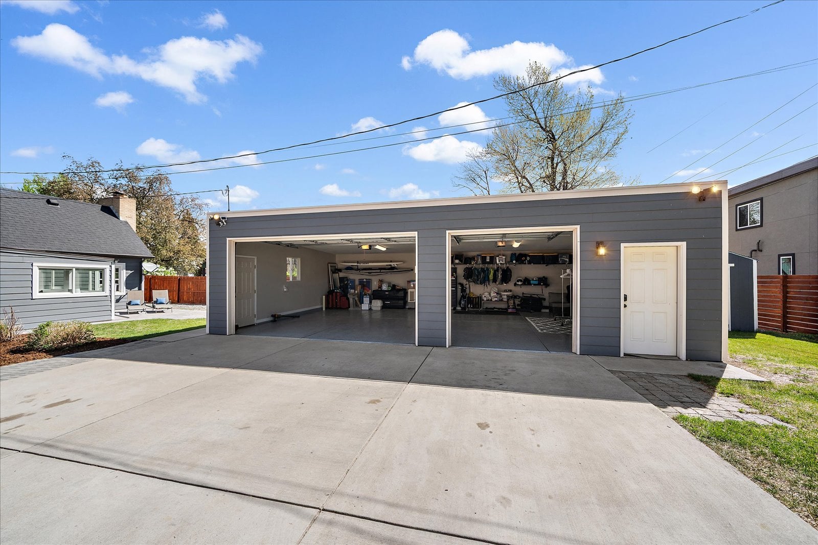 Extraordinary opportunity in the heart of Historic Olde Town Arvada! This iconic property has been reimagined to provide not just one, but two homes with its fully permitted attached ADU + a newer construction 860 sq ft fully finished 3+ car garage! This professional whole home renovation combines nods to the property’s vintage character along with modern day amenities, making it the perfect abode for flexible living arrangements including multi-generational living or income opportunities (including STR, MTR or LTR) or simply enjoy room to grow! The 2-story primary residence offers a highly livable floor plan with sleek hardwood floors, new interior paint, brand new carpet and updated fixtures, trim and hardware and newer vinyl windows. Adjoining the well-appointed living and dining areas, the kitchen offers rich cabinetry, slab granite counters and Craftsman-influenced stone backsplash. A main level bedroom/study is adjacent to a full bath with granite counters and ample storage. You’ll also find a large laundry/mud room with vintage + newer cabinetry convenient to the rear patio and garage entrances. Upstairs two additional bedrooms share a ¾ Jack-n-Jill bath with oversized shower - each room boasting plenty of storage and closet spaces + enjoy a sunlit ‘nook’ off the south facing bedroom. The large unfinished basement/stand up crawl space offers a wealth of additional storage options. The permitted studio/ADU has its own private entrance and provides two spacious rooms - one with brand new carpet and a wall of windows, the 2nd with soaring beamed ceilings with a brick-flanked fireplace. A fully equipped kitchen + stacked washer/dryer and a ¾ bath complete this efficient, easy-living space! Multiple outdoor living spaces beckon for three season relaxation, including a large paver patio with privacy fencing adjacent the main home + a 2nd paver patio alongside the studio/ADU entrance + the added charm of a covered front porch. The fully sodded, fenced, sprinklered lot has the option to utilize the property’s Allen-Reno ditch rights for watering, for the greenest lot on the block! The expansive detached garage is perfect for gearheads, sportsmen/women, car collectors or even those desiring shop space. The home’s exterior boasts newer Hardie Board siding and 2019 roof. 2026 furnace, 2022 water heater + 2025 mini splits in both residences. This home presents so many options, all while you are only 4 blocks from the middle of Olde Town and its dining, shopping, watering holes and year-round events, markets and festivals. Easy access to I-70 corridor and downtown Denver. Live in one residence and watch the other cash flow or spread out and enjoy a convenient dedicated home office, studio, home gym and more - truly endless possibilities!