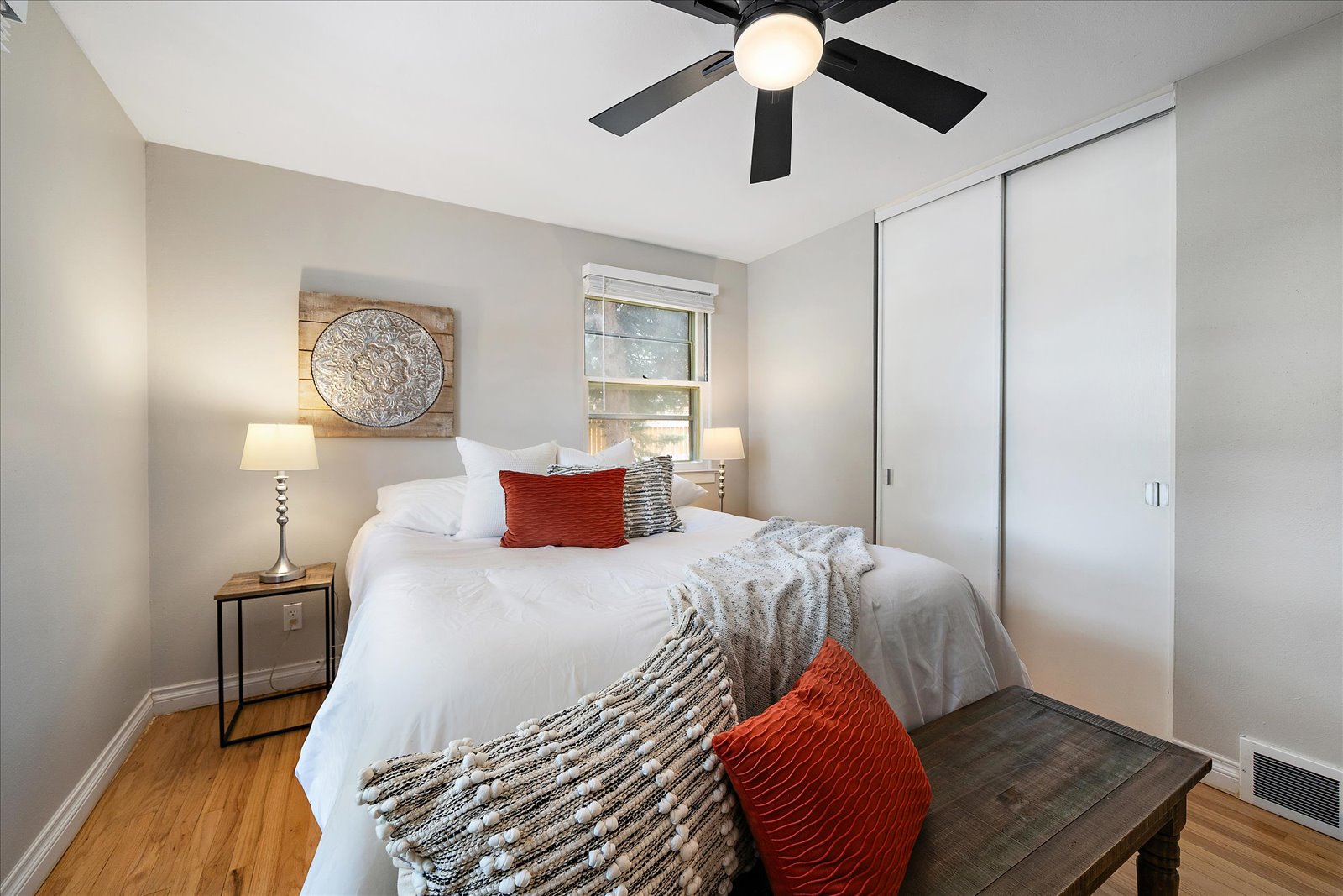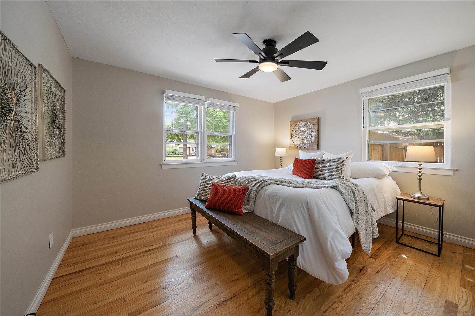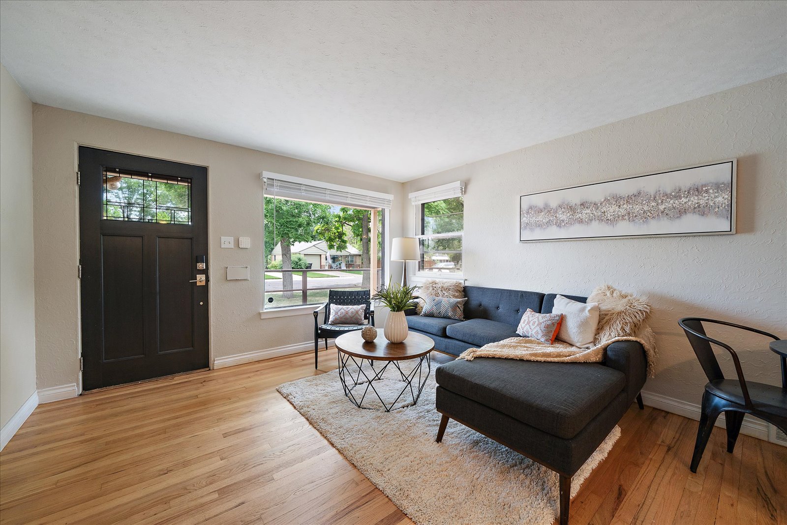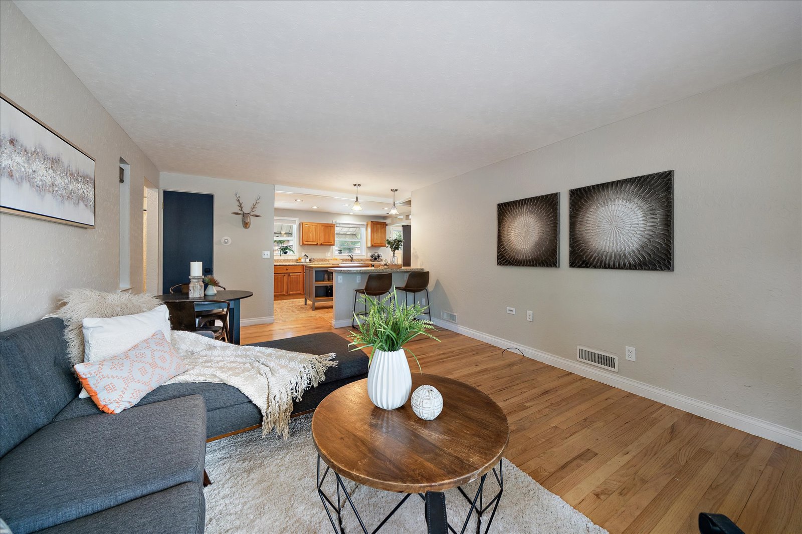 This charming brick bungalow offers an ideal canvas for building equity and creating income potential in one of Arvada’s most desirable neighborhoods—less than a mile from Historic Olde Town. With solid bones and several key updates already completed, it’s ready for your vision. The open-concept layout features a light-filled living area that flows into a spacious kitchen with stainless appliances, gas range, breakfast bar, and generous cabinetry. Refinished hardwood floors run throughout the main living areas, and the two bedrooms share a neutral full bath. Newer interior paint, updated hardware and lighting and newly finished front deck check items off the list and add move-in ready convenience. You'll also find easily accessible main-floor laundry and built-in storage, plus an attached one-car garage. Outside, the large backyard offers plenty of room for customize to your taste—think expanded outdoor living, or a landscaped retreat to boost short term or long term rental appeal. Major system upgrades include 2024 roof, 2023 sewer line and 2022 radon mitigation with vapor barrier—saving you on upfront capital expenses. Whether you're looking for a profitable long- or short-term rental or a primary home with upside potential, this property checks all the boxes. Bikeable and walkable to the restaurants, breweries, and shops of Olde Town Arvada, plus quick access to light rail, I-70, Denver, and Boulder. The perfect first timer buyer, empty nester or a smart addition to any real estate portfolio!