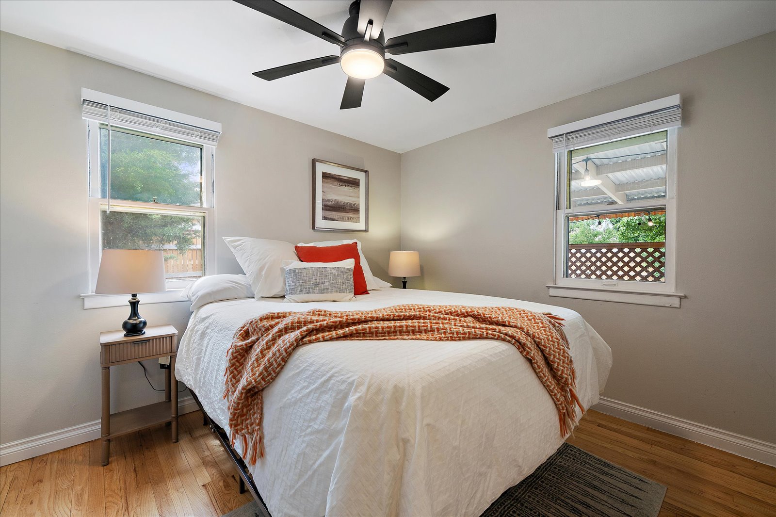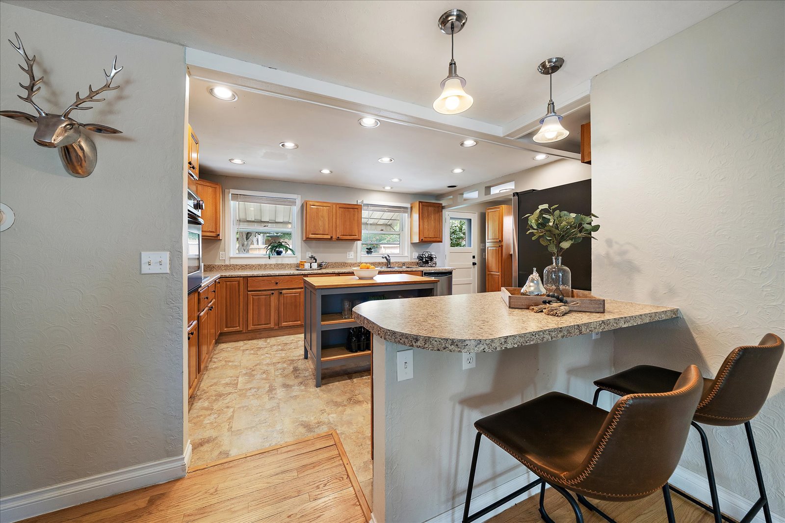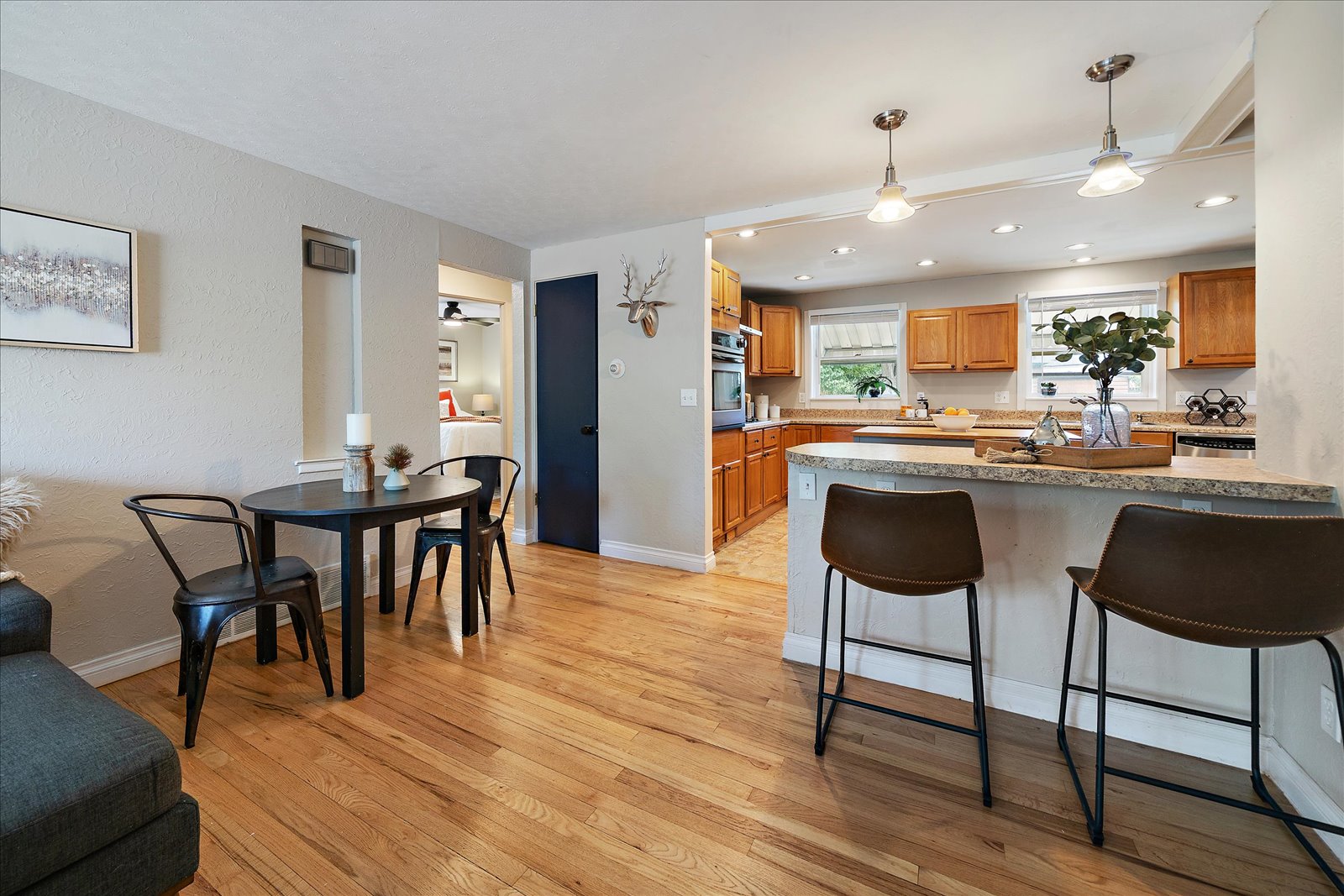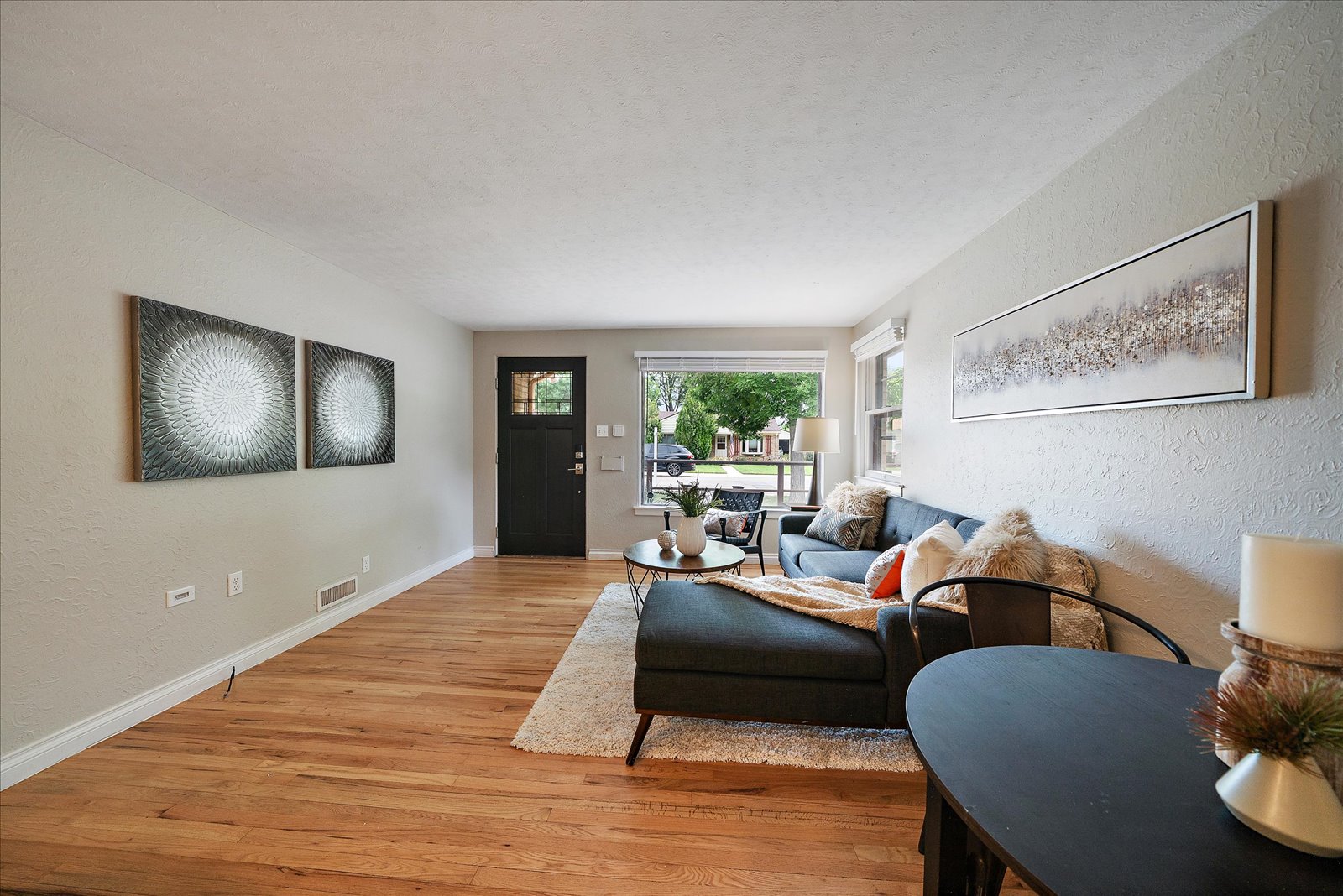 This charming brick bungalow offers an ideal canvas for building equity and creating income potential in one of Arvada’s most desirable neighborhoods—less than a mile from Historic Olde Town. With solid bones and several key updates already completed, it’s ready for your vision. The open-concept layout features a light-filled living area that flows into a spacious kitchen with stainless appliances, gas range, breakfast bar, and generous cabinetry. Refinished hardwood floors run throughout the main living areas, and the two bedrooms share a neutral full bath. Newer interior paint, updated hardware and lighting and newly finished front deck check items off the list and add move-in ready convenience. You'll also find easily accessible main-floor laundry and built-in storage, plus an attached one-car garage. Outside, the large backyard offers plenty of room for customize to your taste—think expanded outdoor living, or a landscaped retreat to boost short term or long term rental appeal. Major system upgrades include 2024 roof, 2023 sewer line and 2022 radon mitigation with vapor barrier—saving you on upfront capital expenses. Whether you're looking for a profitable long- or short-term rental or a primary home with upside potential, this property checks all the boxes. Bikeable and walkable to the restaurants, breweries, and shops of Olde Town Arvada, plus quick access to light rail, I-70, Denver, and Boulder. The perfect first timer buyer, empty nester or a smart addition to any real estate portfolio!